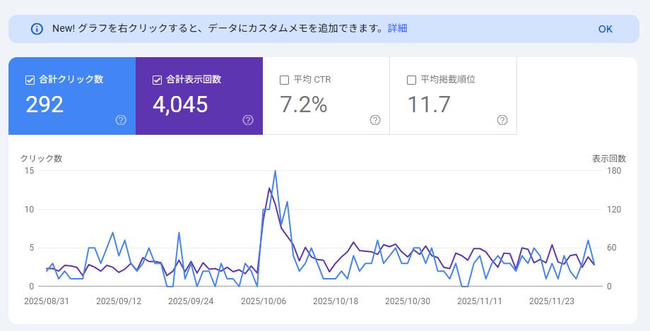 Googleサーチコンソール(Search Console)に追加された新機能 「グラフを右クリックしてカスタムメモ(アノテーション)を追加できる機能」 は、まさにその悩みを解消するための便利な仕組みです。